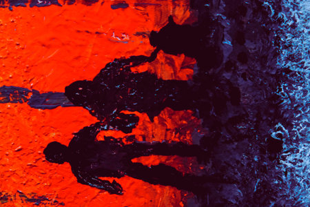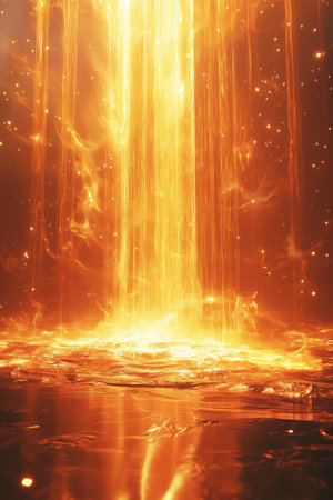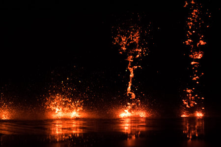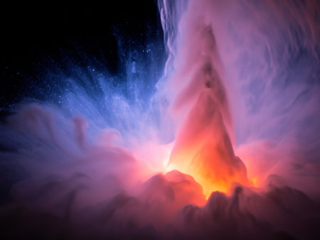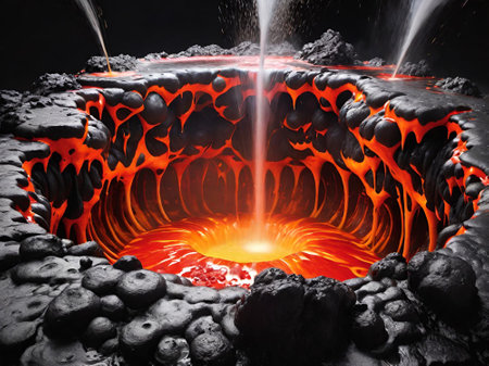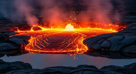 Volcanic eruption meeting ocean, showcasing fiery contrast
