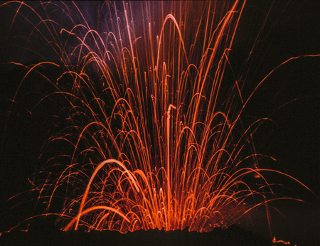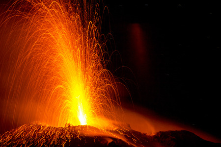 69/5000 Explosion of an active volcano spraying lava in the night on Stromboli Island in Italy