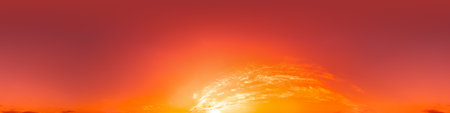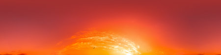 Golden glowing red orange overcast sunset sky 360 hdr panorama. Seamless spherical equirectangular panorama. Sky dome or zenith for 3D visualization and sky replacement for aerial drone 360 panoramas.