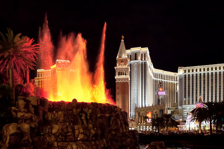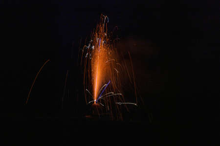 Splashes of fountain. Water illuminated in colorful falling on fountain which change it water color in night. Wonderful multicolored fountain throws up high streams of sparkling water.