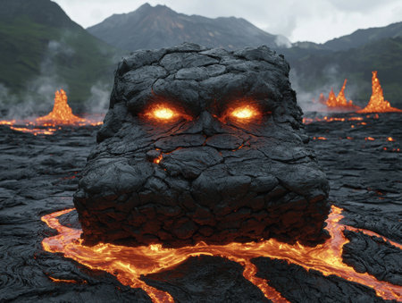 Fiery lava monster emerging from volcanic eruption