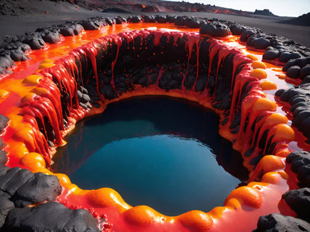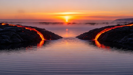 Witness the breathtaking intersection of fire and water as lava cascades into the sea, forming new landforms.