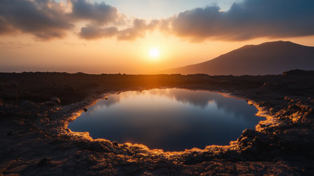 Sunrise over the lake at Krafla volcanic crater, Iceland