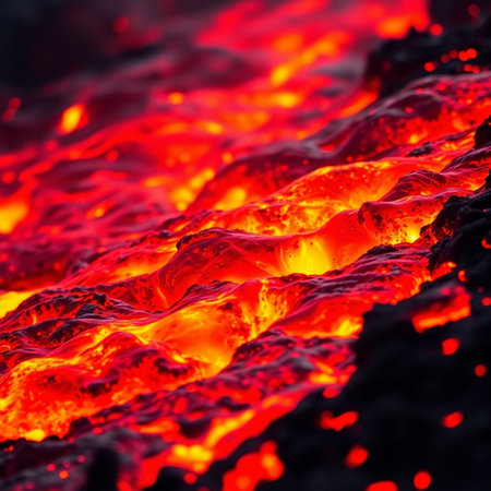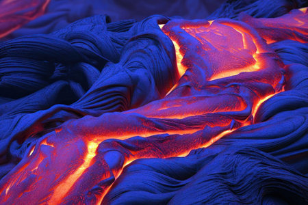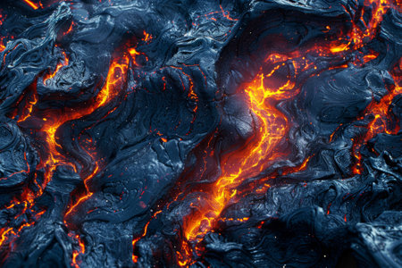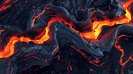 Lava flow forms an abstract background with striking orange and black textures, highlighting the beauty of molten rock and the wonders of nature