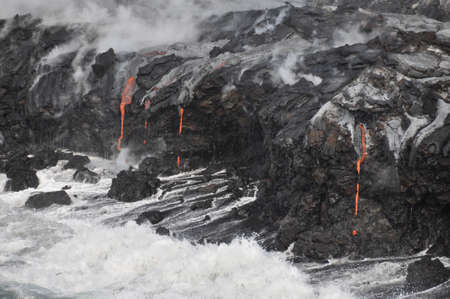 Lava flow meeting coast 2, Kilauea, Big Island of Hawaii