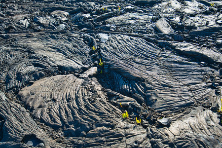 Forming lava landscape in Hawaii. Kilauea volcano, Pu'u O'o vent.