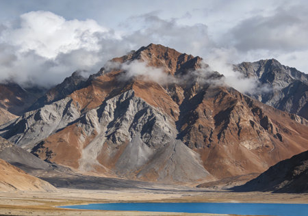beautiful mountain landscape and blue sky with clouds in Indian Himalayas, Ladakh region