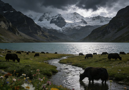 tranquil scene in majestic mountains with valley in Indian Himalayas, Ladakh region