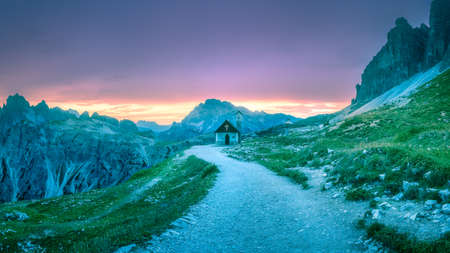 Incredible view on small chapel in the Tre Cime Di Laveredo National Park
