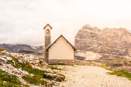 Small mountain chapel, Cappella degli Alpini, at Tre Cime di Lavaredo, Dolomites, Italy.
