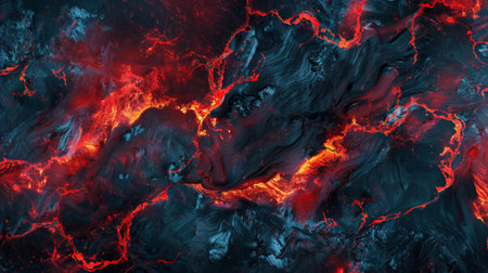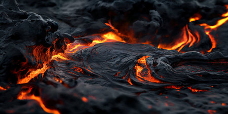 Lava flow forms an abstract background with vibrant orange and dark textures, highlighting the stunning power of nature and its transformative processes