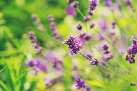 Lavender flowers in the field. Selective focus and shallow depth of field.