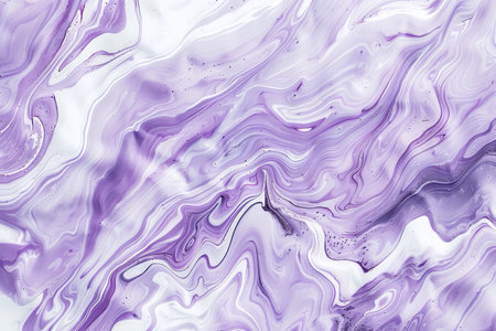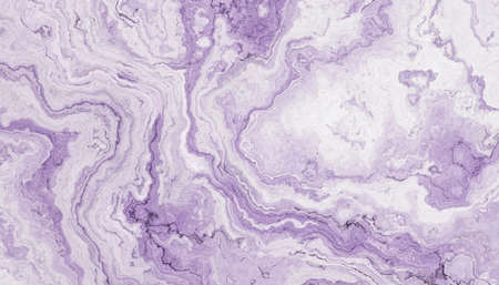 Abstract fluid art background violet and white colors. Liquid marble. Acrylic painting on canvas with purple gradient and splash. Watercolor backdrop with lavender wavy pattern. Stone section.