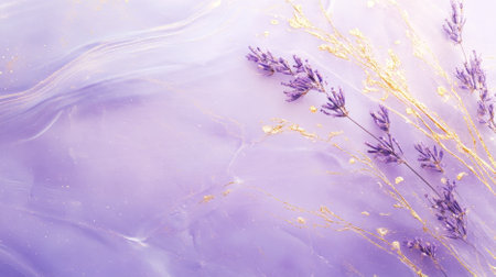 A soft lavender background with subtle gold accents. The delicate purple and shimmering gold create a refined and elegant look.