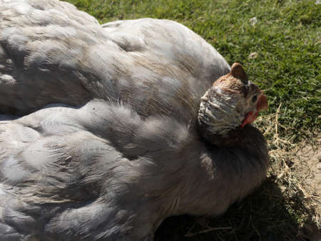 White brama Colombian chicken from the back, close-up.