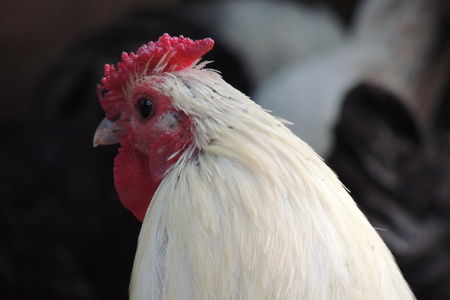 Close up of the head of a white rooster
