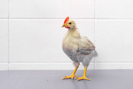Portrait of a young chicken on a white background