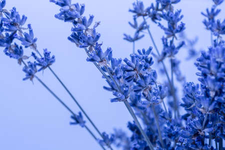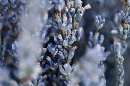 Gentle purple lavender flowers grow on the field outdoors for a bouquet or wallpaper