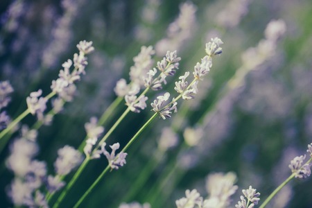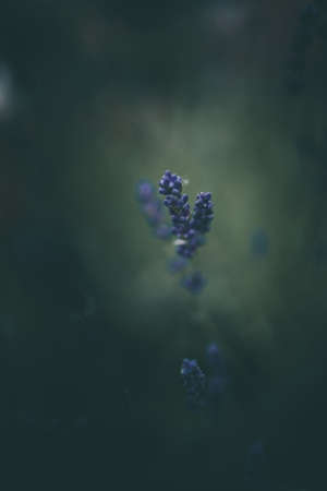 lush artistic background of lavender in flower taken with a vintage lens; for use for graphic resources copy space and cloth containing only the colours of purple and green