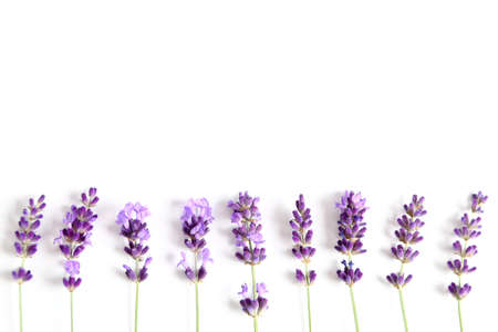 Aromatic Lavender flowers bundle on a white background. Isolated morning Lavender flowers close-up