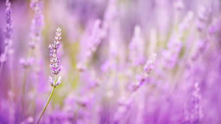 Lavender flowers blooming in the lavender field. Soft focus. Floral backgrond