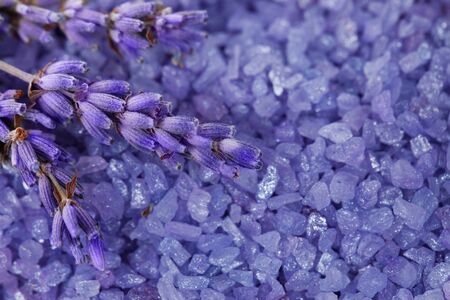 Sprigs of lavender flowers on a background salt bath
