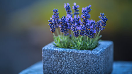 A stunning lavender plant in a stone pot, showcasing vibrant purple flowers and lush green leaves, perfect for enhancing home decor and natural aesthetics.