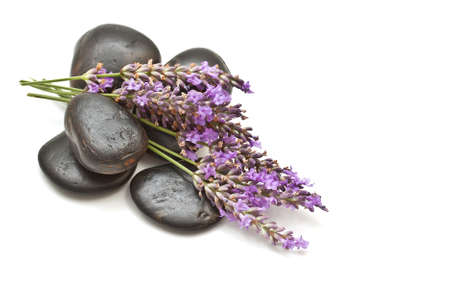 Lavender and spa stones on a white background