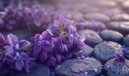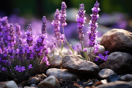 Generative AI Image of Beautiful Purple Lavender Flower with Stone Rock Decoration Background