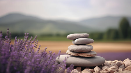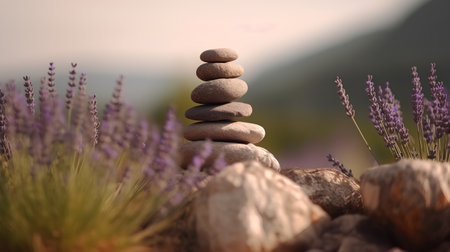 Stack of stones and lavenders with Generative AI Technology