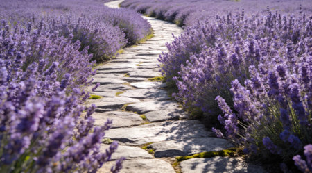 Tranquil digital composition capturing inviting exploration vibes through precise midday illumination and balanced purple-gray harmony. Meticulous rendering enhances depth and serenity, suiting travel agency visuals, wellness retreat promotions, nature blog headers, and lifestyle branding materials. Offers versatile appeal for designers seeking evocative landscapes i... AI-generated illustration.
