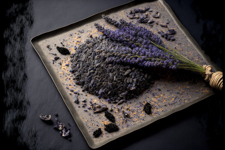 Dried lavender closeup background on table. Summer nature aromatic floral aroma. Generate Ai