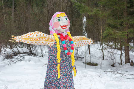 The effigy of carnival is in a forest glade. Ivanovo, Russia, February 22, 2015. On the holiday of Maslenitsa.