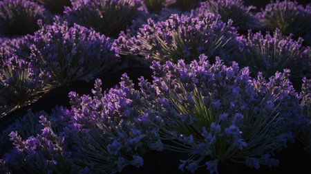 Generative AI : Detail of purple lavender flowers in a plantation