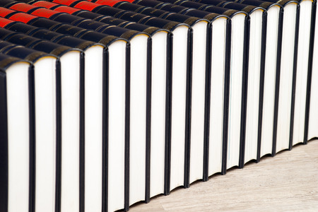 Books. Lots of colourful thick open books stand on a dark background. ready to read