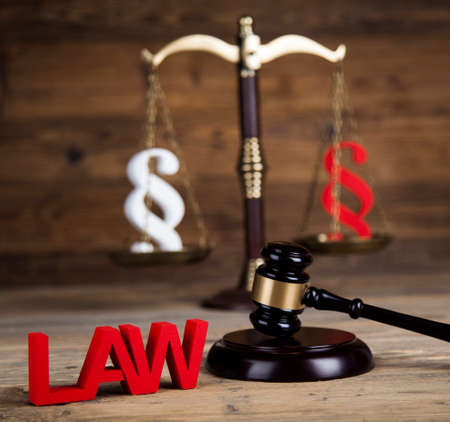 Mallet, Law, legal code and scales of justice concept and paragraph sign