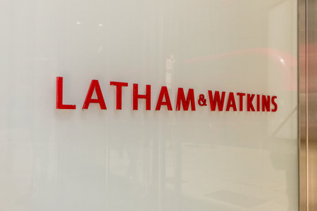 London. May 2018. A view of xthe sign outside Latham and watkins in the City of london in London.