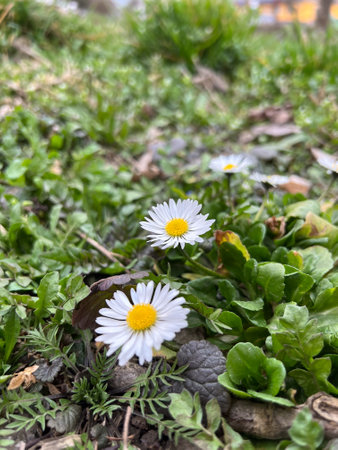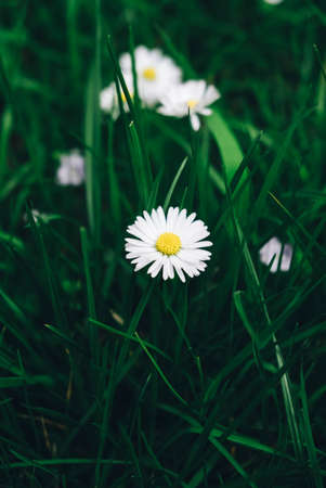 first single daisy flower at garden grass in spring