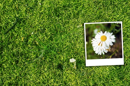 summer chamomile on a green lawn in the form of minimalism, with space for text