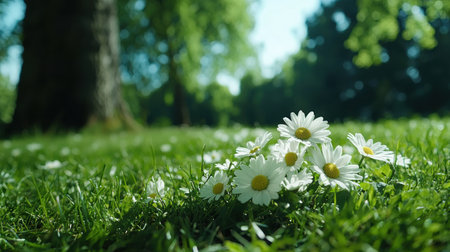 Vibrant daisies in a lush green meadow