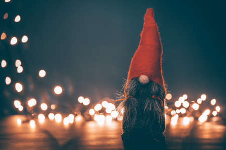 Merry Christmas and Happy Holidays! Cute little nordic gnome with Christmas lights
