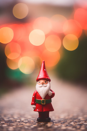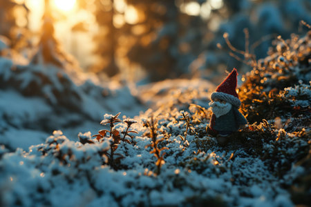 Santa Claus Christmas garden Gnome standing in the snow, cute gnome in the winter snow for Christmas celebration, good background for digital christmas card or multimedia content creation