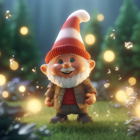 Friendly and Cheerful Gnome in 3D Illustration generated by AI