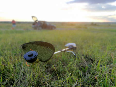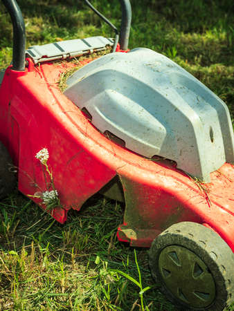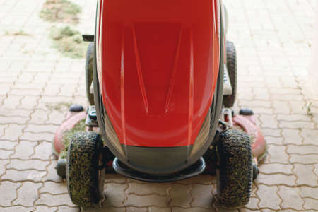 Garden and grass maintainance details - close up view of grass mower, lawnmower details