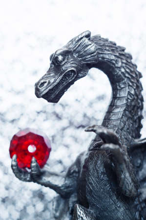 Metallic dragon holding a bead