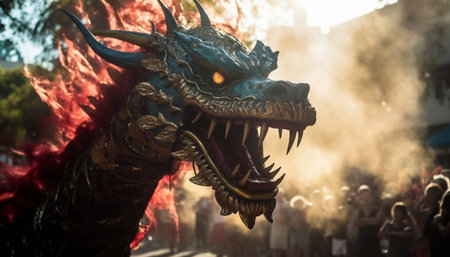 Dragon sculpture symbolizes Chinese culture fantasy and traditional festival celebration generated by artificial intelligence