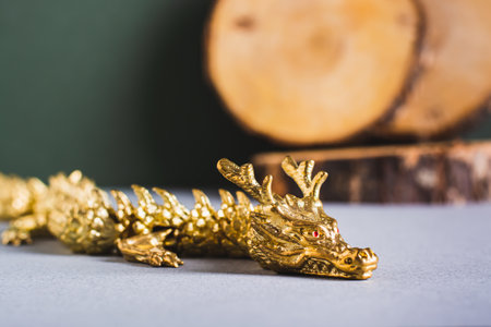 Dragon and wood decoration for Chinese new year green wood dragon