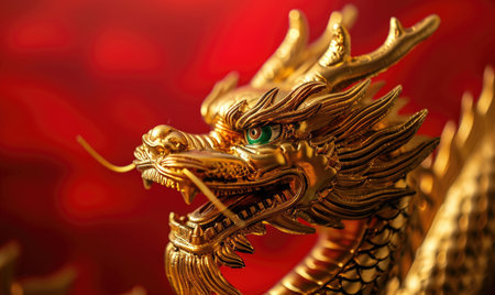 Golden Dragon as a symbol of Chinese New Year on a red background with space for text.