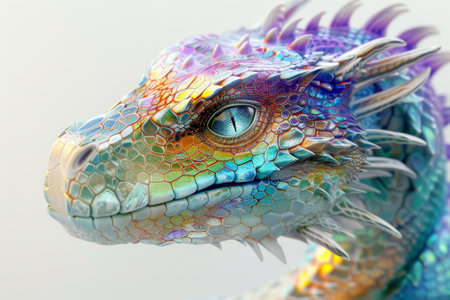 This phantasy dragon captivates with its stunning design and fierce gaze, highlighting the intricate textures of its scales against a pure white background.