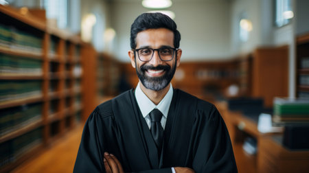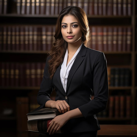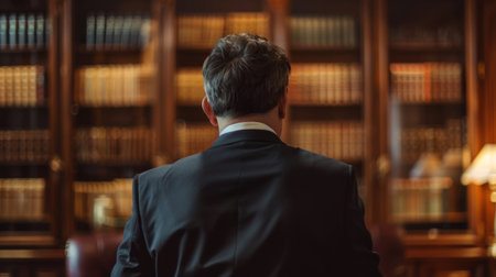 Accomplished lawyer in a grand legal office, symbolizing professional and legal success.